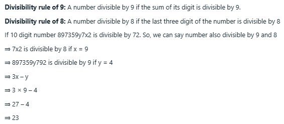 If the 10-digit number 897359y7x2 is divisible by 72, then what is the value of(3x-y), for the possible greatest value of y ?