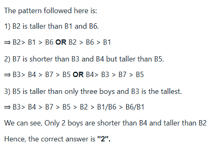 The heights of seven boys B1, B2, B3, B4, B5, B6 and B7 is compared. They all have different heights. B2 is taller than B1 and