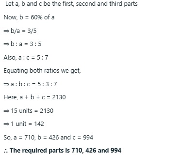 A sum of Rs2 130 is to be divided into three parts The second part is 60 of the first ai1d the ratio...........
