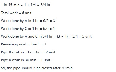 Three pipes, A, B, C can fill an empty cistern in 2, 3 and 6 hours respectively. They are opened together. After what time should B be closed, so that the cistern gets filled in exactly 1 hr 15 min?