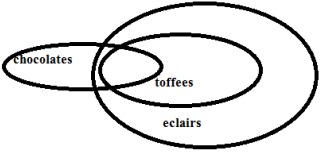 Given that Statements: I. Some chocolates are toffees. II. All toffees are eclairs. From the above Statements, we can draw the figure is given below