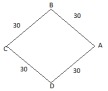 Point A is the home of abhijeet, he moves 30 m in north west direction from point A and reaches point B, from point B he again moves 30 m in south west direction top reach point C, then he moves 30 m in south-east direction to reach point D, and finally he moves 30 m in north-east direction to return back to point A. therefore the distance between abhijeet's home to the end point is 0. This is a direct explanation. Take step by step. Like he moved 30m north west. So represent it in the figure 1. Then 30m south west. Represent it in figure 2 combining figure 1 and likewise.