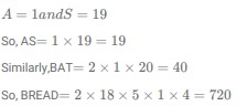 If AS = 19 and BAT = 40, then how will you code BREAD?