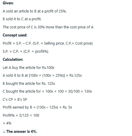 A sold an article to B at 25% profit and B further sold it to C by earning a certain profit. If the cost price of C is 30% more than the cost price of A, then find the profit percentage earned by B.