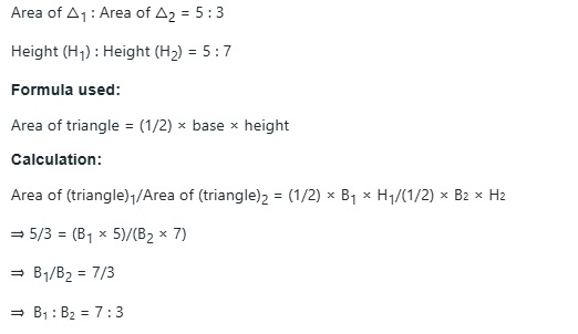 The area of two triangles is in the ratio 5 : 3 and their heights are in the ratio 5 : 7. Find the ratio of their bases.