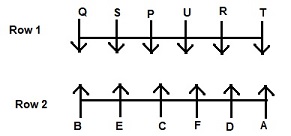 Twelve persons are sitting in two parallel rows containing six person each in such a way that there is an equal distance between adjacent persons. In row-1 P, Q, R, S, T and U are seated and all of them are facing South. In row-2 A, B, C, D, E and F are seated and all of them are facing North. Therefore, in the given seating arrangement each member seated in a row faces another member in the other row.