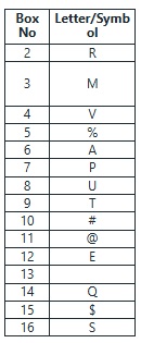 Multiple Choice Questions on Which letter or symbol is written against the box which is 4 places away from the bottommost box ........ for SBI(PO) Exam Preparation