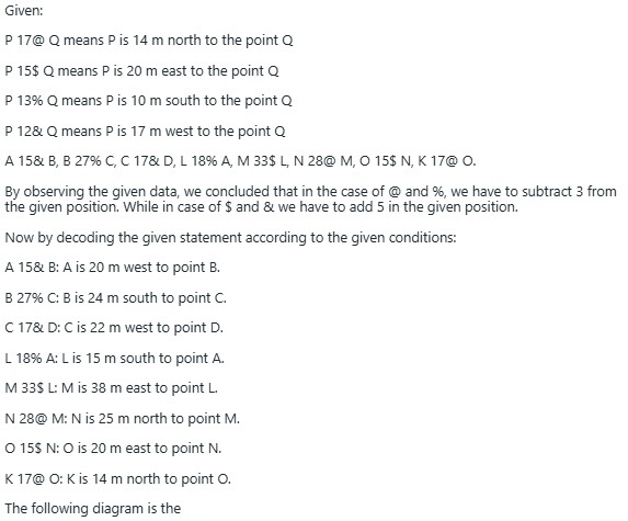 Direction: Read the following information carefully and answer the question that follow: The coding language used to indicate the positions of points is as follows: