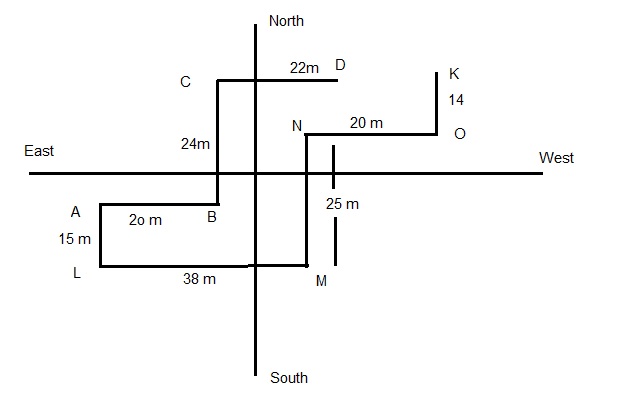 P 15$ Q means P is 20 m east to the point Q
