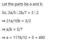 Rs 1176 are divided into two parts in such a way that three-fifths of the first part and two-seventh of the second part is in the ratio 3 : 2. The first part is?