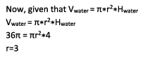 A cylindrical closed tank contains 36 pi cubic metres of water and is filled to half of i...........
